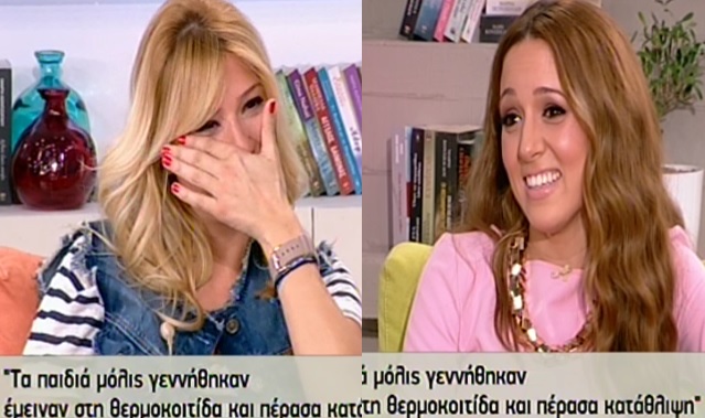 «Πέρασα κατάθλιψη. Τρεις ημέρες αφού γέννησα, έπρεπε να φύγω γιατί δεν με άφησαν να κάτσω μαζί τους. Έμειναν σε θερμοκοιτίδα και γι’ αυτόν τον λόγο πέρασα κατάθλιψη. Όταν γίνεσαι πρώτη φορά μητέρα και βλέπεις τα παιδιά σου με “καλώδια” και δεν ξέρεις. Και έλεγα μέσα μου “γιατί;”. Πήγαινα σπίτι και έκλαιγα. Ένιωθα μόνη γιατί δεν ζούσαν στην κοιλιά μου πια. Μετά όμως το ξεπέρασα», είπε χαρακτηριστικά η Καλομοίρα, κάνοντας τη Φαίη Σκορδά να δακρύσει.