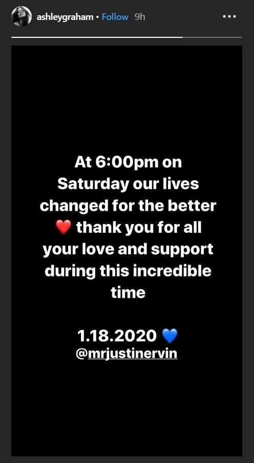 «Από τις 6 το απόγευμα του Σαββάτου οι ζωές μας άλλαξαν προς το καλύτερο. Σας ευχαριστούμε όλους για την αγάπη και την υποστήριξη καθ’όλη τη διάρκεια αυτής της υπέροχης περιόδου», έγραψε χαρακτηριστικά η Ashley σε Instagram story που ανέβασε κάνοντας tag και τον σύζυγο της, Justin Ervin.