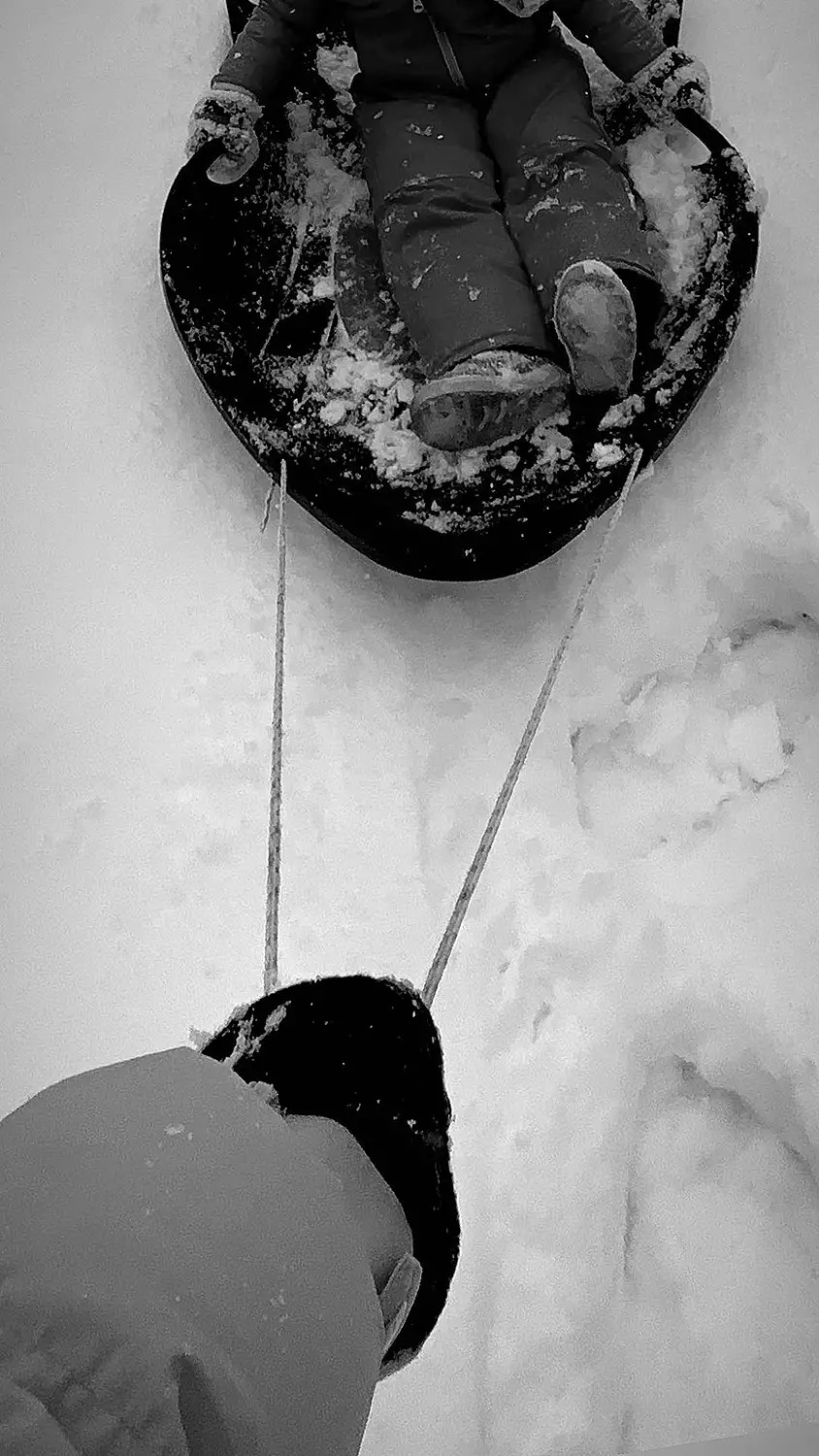Στη συνέχεια, η περήφανη μαμά δημοσίευσε μια ασπρόμαυρη φωτογραφία της κόρης της. Σε αυτή, την βλέπουμε να την τραβάει στο χιόνι πάνω σε ένα έλκηθρο.