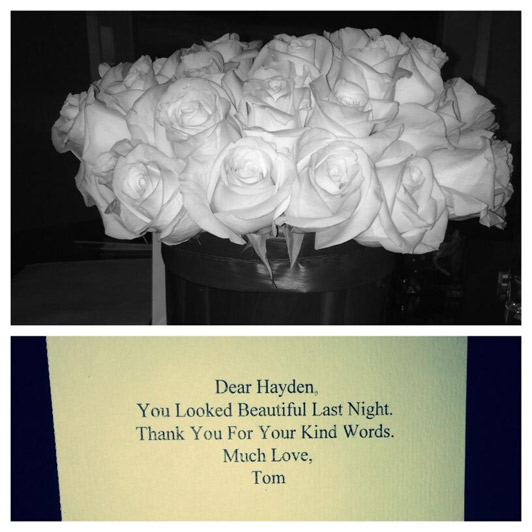 Η κίνηση της αυτή σχολιάστηκε αρκετά, ωστόσο ο σχεδιαστής, σαν γνήσιος gentleman δεν παρέλειψε την επομένη να της στείλει ένα μπουκέτο λευκά τριαντάφυλλα μαζί με μια κάρτα που διάβαζε ”Αγαπητή Heyden, ήσουν πολύ όμορφη χθες. Σε ευχαριστώ για τα καλά σου λόγια. Την αγάπη μου, Tom.”