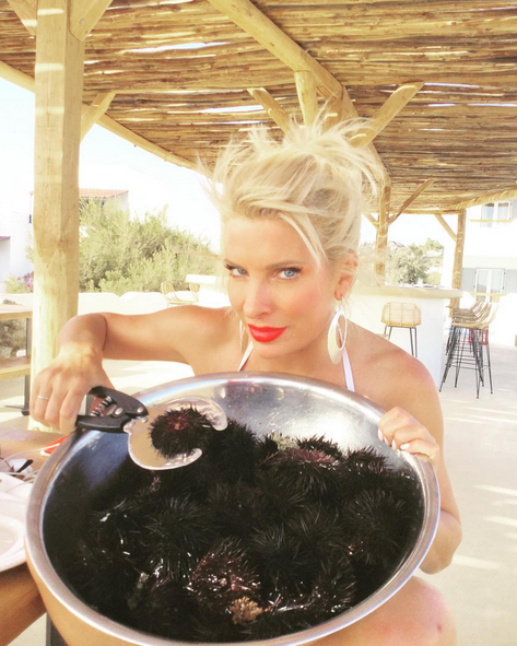 Λίγο μετά το τέλος της εκπομπής της λοιπόν, η όμορφη Ελένη έσπευσε να φωτογραφηθεί με μία ολόκληρη γαβάθα με αχινούς! Μάλιστα φρόντισε να γράψει ενθουσιασμένη: «Τα τυχερά μας !!!Πεθαίνωωωω μυρίζουν θάλασσα!».