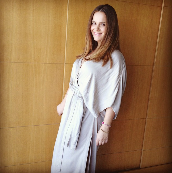 Την είδαμε λοιπόν με ένα ολομέταξο, wrap dress, που θυμίζει και λίγο μάξι κιμονό, σε ένα ουδέτερο, πολύ ανοιχτό γκρι χρώμα, το οποίο συνδύασε με ασορτί ζώνη στη μέση, κάνοντας τη σιλουέτα της ακόμα πιο θηλυκή. Όπως μας ενημέρωσε μέσα από τον προσωπικό της λογαριασμό στο Instagram το εν λόγω κομμάτι ανήκει στην εταιρεία Devotion Twins και δε μπορούμε παρά να τη συγχαρούμε που ολοκλήρωσε το look της με απόλυτα φυσικό μακιγιάζ χωρίς ίχνος επιτήδευσης.