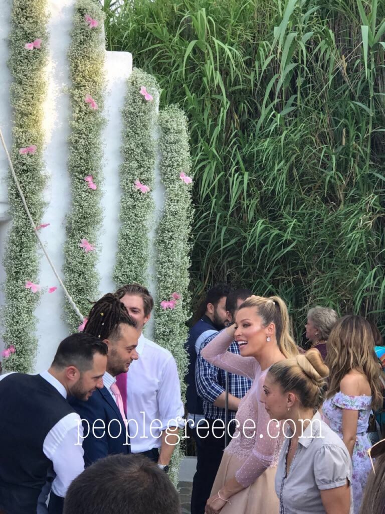 Η τραγουδίστρια έλαμπε μέσα στην δημιουργία που σχεδίασαν η Mi-Ro αποκλειστικά για την ημέρα. Το ίδιο και η Μαριέττα Χρουσαλά, η οποία επέλεξε να φορέσει φόρεμα, Celia Kritharioti.
