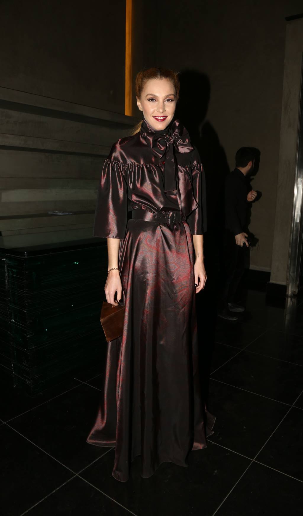 Παρά τη ρετρό του διάθεση, το σύνολο αυτό πήγαινε απόλυτα στην Τάμτα, που μας έχει συνηθίσει κυρίως σε πολύ fashion forward εμφανίσεις. Το ολοκλήρωσε μαζεύοντας τα μαλλιά της και τονίζοντας τα χείλη της με κραγιόν σε σκούρο κόκκινο χρώμα.