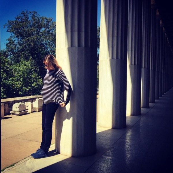 Το ίδιο συμβαίνει και τώρα που είναι έγκυος. Μπήκε στον όγδοο μήνα και η κοιλίτσα της πλέον έχει μεγαλώσει αλλά τα υπόλοιπα σημεία του σώματός της έχουν αλλάξει ελάχιστα. Με ένα κλασικό outfit λοιπόν πόζαρε και ανέβασε στο Instagram με το hashtag #stylethebump. Η Βίκυ λοιπόν επέλεξε μια μαρινιέρα Theory την οποία συνδύασε με παντελόνι AG. Το look της ολοκλήρωσε με σουέντ μποτάκια Toms σε έντονο μπλε χρώμα και φυσικά για ακόμα μία φορά το look της ήταν άψογο.