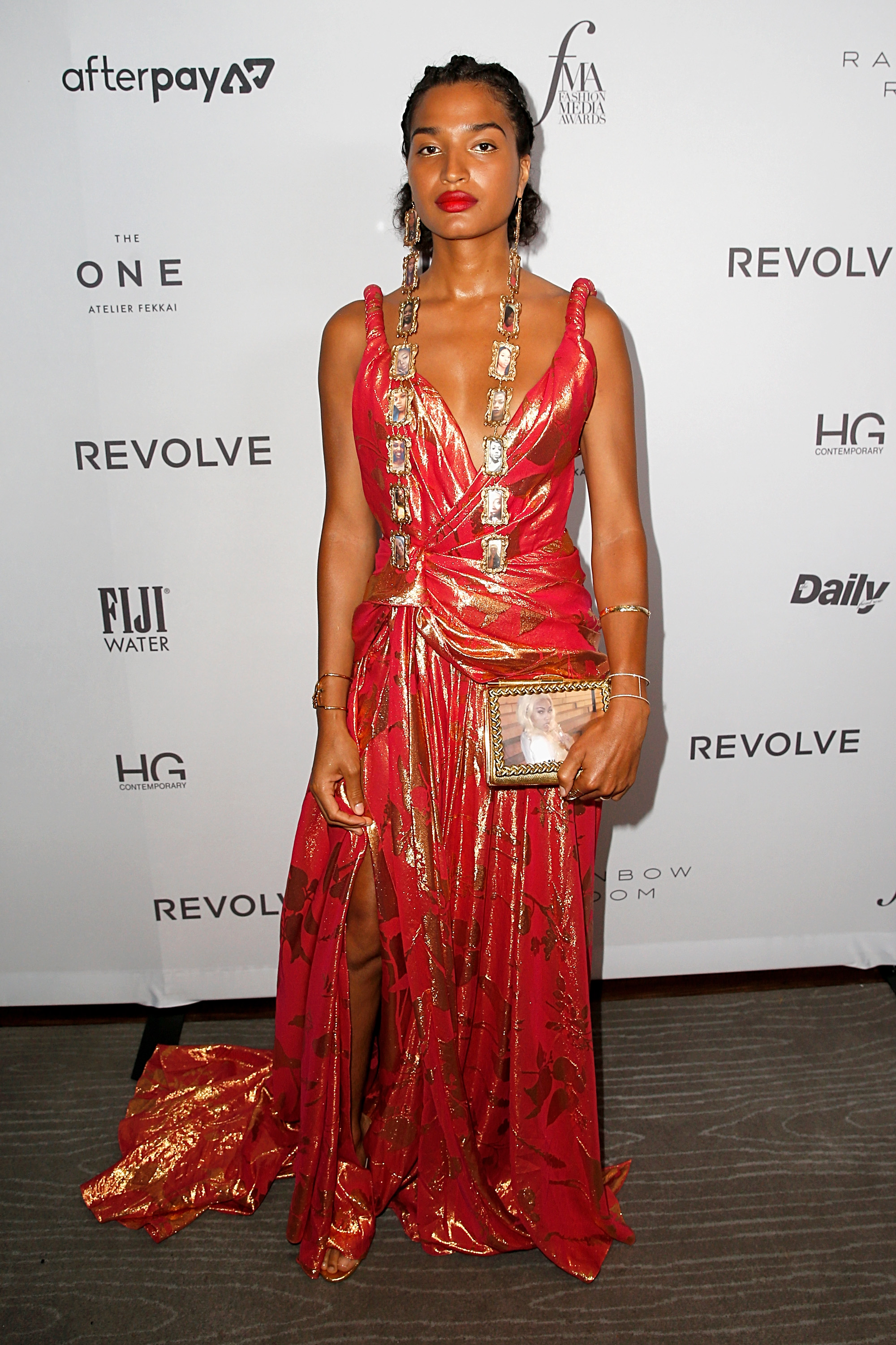 Η 24χρονη ηθοποιός φορούσε ένα ζευγάρι σκουλαρίκια που πάνω τους κρέμονταν 16 φωτογραφίες μαύρων trans γυναικών που δολοφονήθηκαν μέσα στο έτος ενώ στα χέρια της κρατούσε μια κορνίζα με τη φωτογραφία της Bailey Reeves, μιας 17χρονης τρανς που τη δολοφόνησαν τρεις μέρες πριν από το event.