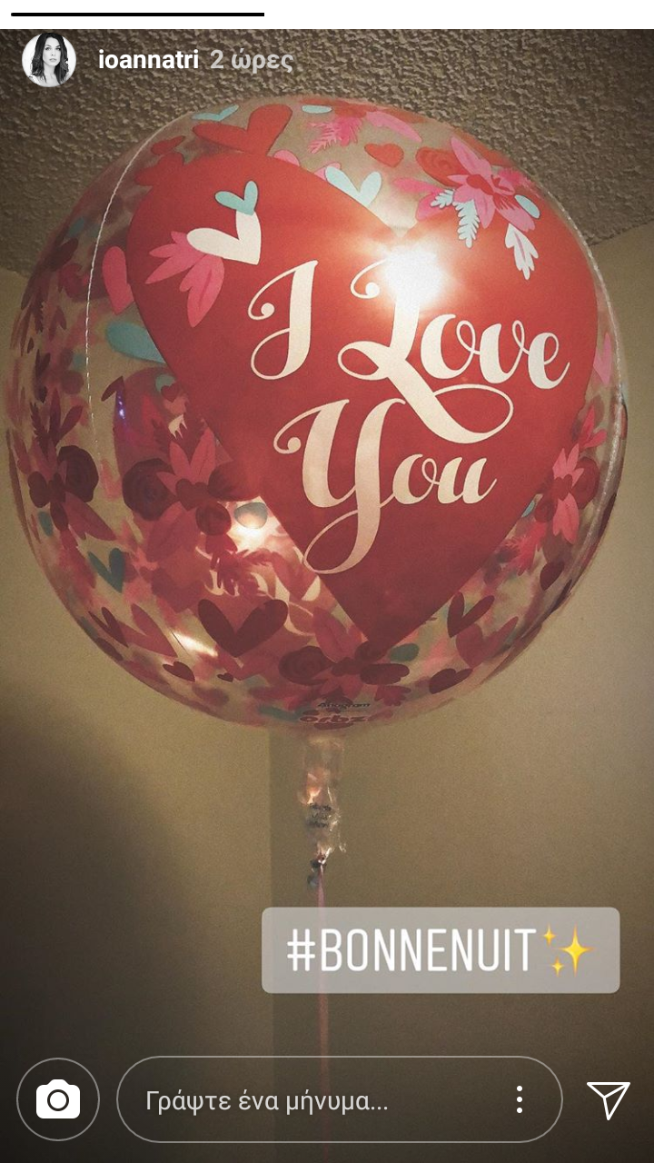 Ο Πάνος Βλάχος έκανε έκπληξη στην αγαπημένη του με ένα μεγάλο μπαλόνι, γεμάτο κόκκινες καρδιές, το οποίο έγραφε πάνω I Love You. Η Ιωάννα μάλιστα δεν δίστασε να το φωτογραφίσει και να το ανεβάσει στα stories της στο instagram. Δεν ξέρουμε αν γιόρτασαν τη μέρα και με άλλο τρόπο, αλλά σίγουρα το δωράκι αυτό ήταν super cute.