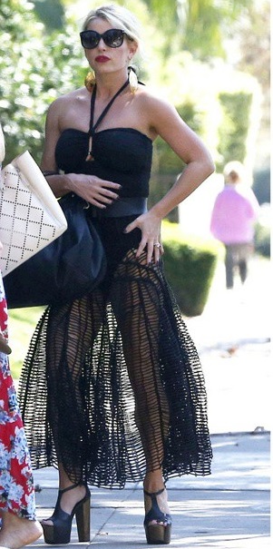 Ο φωτογραφικός φακός την απαθανάτισε σε πάρτι γενεθλίων στο Beverly Hills ντυμένη με ένα μαύρο κορμάκι το οποίο φορούσε μέσα από μία διάφανη, μάξι mesh φούστα που αποκάλυπτε το αδυνατισμένο της σώμα. To lookτης έκαναν ακόμα πιο δραματικό τα γυαλιά ηλίου σε στιλ Jackie O. που φορούσε, τα μεγάλα χρυσά σκουλαρίκια και ένα ζευγάρι ξύλινες πλατφόρμες.