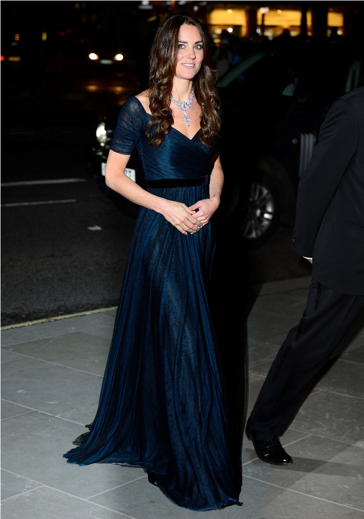 Την πρώτη της επίσημη εμφάνιση για το 2014 πραγματοποίησε προ ημερών η Kate Middleton στη National Portrait Gallery του Λονδίνου. H Δούκισσα του Cambridge παραβρέθηκε στο ετήσιο Portrait Gala, στο οποίο κατέφθασε μόνη της φορώντας μια εντυπωσιακή αέρινη τουαλέτα Jenny Packham. Δεν είναι η πρώτη φορά που η Kate επιλέγει μια δημιουργία της βρετανίδας σχεδιάστριας σε παρόμοιο στυλ , αυτή τη φορά επέλεξε ένα φόρεμα σε απόχρωση μπλε-πετρόλ το οποίο συνδύασε με ένα εντυπωσιακό κολιέ Nizam de Hyderabad. Την εμφάνιση ολοκλήρωσε με φυσικό μακιγιάζ και ελαφρώς κυματιστά μαλλιά.