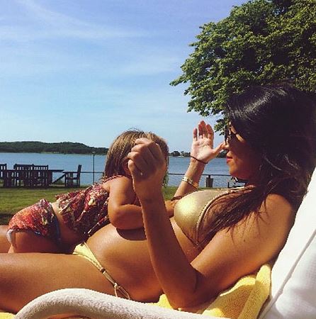 Πρόσφατα, όμως η τηλεπερσόνα, πήγε το θέμα λίγο παραπέρα και μας αποκάλυψε μέσα από τον προσωπικό της λογαριασμό στο Instagram, ολόκληρη την φουσκωμένη της κοιλίτσα. Η 35χρονη φορώντας χρυσό μπικίνι και έχοντας στην αγκαλιά της την κόρη της Penelope Scotland, η οποία σήμερα γίνεται δύο ετών, έδειξε με τον καλύτερο τρόπο τον λόγο που το τελευταίο καιρό πλέει σε πελάγη ευτυχίας και εννοούμε φυσικά την εγκυμοσύνη της.