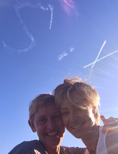 «Love is in the air» και μάλιστα κυριολεκτικά. Αυτό αποδεικνύεται στην περίπτωση της Ellen DeGeneres και της συζύγου της. Πράγματι, η Portia de Rossi εξέπληξε ευχάριστα την πασίγνωστη παρουσιάστρια με ένα τρυφερό μήνυμα που «έγραψε» στον ουρανό στο πλαίσιο της έκτης επετείου τους το περασμένο Σάββατο.