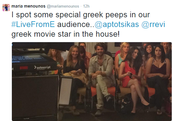 Στο πλατό της εκπομπής της Μαρίας Μενούνος βρέθηκε ο Αποστόλης Τότσικας και η σύζυγός του Ρούλα Ρέβη. Όπως παρατηρείτε και εσείς από το στιγμιότυπο το οποίο ανάρτησε η καταξιωμένη στις ΗΠΑ παρουσιάστρια, στον προσωπικό της λογαριασμό στο Twitter, το νιόπαντρο ζεύγος κάθεται στις πρώτες καρέκλες της τηλεοπτικής εκπομπής παρακολουθώντας από κοντά την καλή του φίλη.