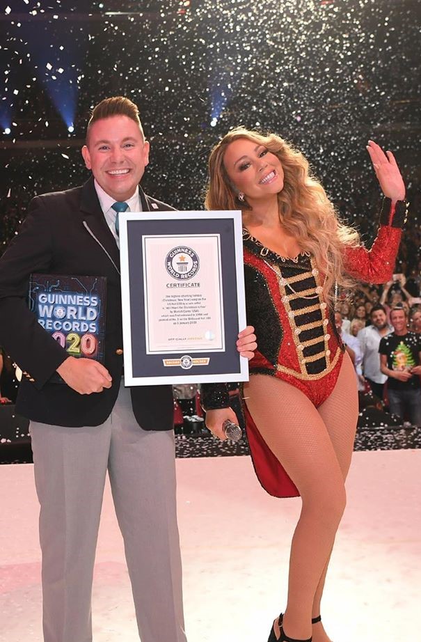 Η Mariah παρέλαβε την τιμητική πλακέτα των βραβείων Guinness κατά τη διάρκεια μιας Χριστουγεννιάτικης συναυλίας της στο The Colosseum στο Las Vegas.