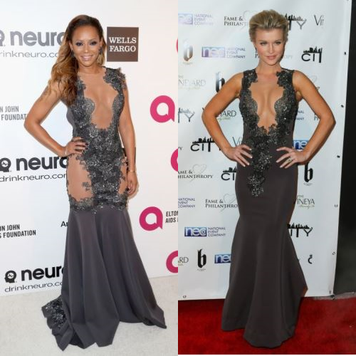 Η μόνη διαφορά στο φόρεμα είναι ότι αυτό του πρώην Spice Girl είναι πιο διαφανές από της δεσποινίς Krupa. Ίσως το έκανε για να δώσει έμφαση στις καμπύλες της. Όμως αυτό ήταν και το λάθος της καθώς το αποτέλεσμα ήταν υπερβολικό.