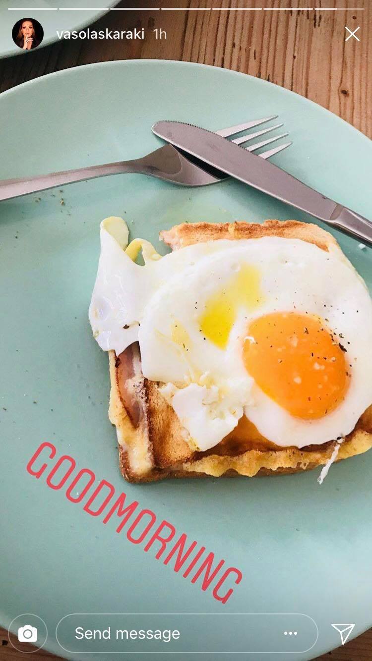 Η Βάσω Λασκαράκη είναι από τις γυναίκες που καταφέρνουν να διατηρούν το βάρος τους σταθερό, χωρίς σκαμπανεβάσματα. Ακόμα και κατά τη διάρκεια της εγκυμοσύνης της, η σιλουέτα της δεν άλλαξε πολύ. Πώς τα καταφέρνει άραγε; Όπως φαίνεται, το μυστικό της είναι η ισορροπημένη διατροφή και το καλό πρωινό. Η αλήθεια είναι πως δεν περιμέναμε να τρώει τηγανιτά αυγά και ψωμί, αλλά να που συμβαίνει.