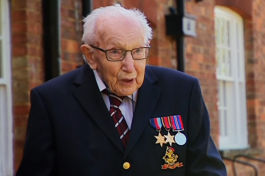 Ο Τομ Μουρ, 99 ετών, βετεράνος του Β΄ Παγκόσμιου Πολέμου, που αποφάσισε να κάνει βόλτες στον κήπο του στηριγμένος σε περιπατητήρα, ζητώντας από χρήστες ιστότοπων κοινωνικής δικτύωσης να συνεισφέρουν ένα μικρό ποσό όταν ολοκλήρωνε την καθεμιά, για να δωρίσει το ποσό που θα συγκεντρωνόταν στο εθνικό σύστημα υγείας της Βρετανίας, το NHS, καθώς είναι αντιμέτωπο με την πανδημία του κορωνοϊού, μπόρεσε να συγκεντρώσει πάνω από 12 εκατομμύρια λίρες, ή πάνω από 13,7 εκατομμύρια ευρώ.