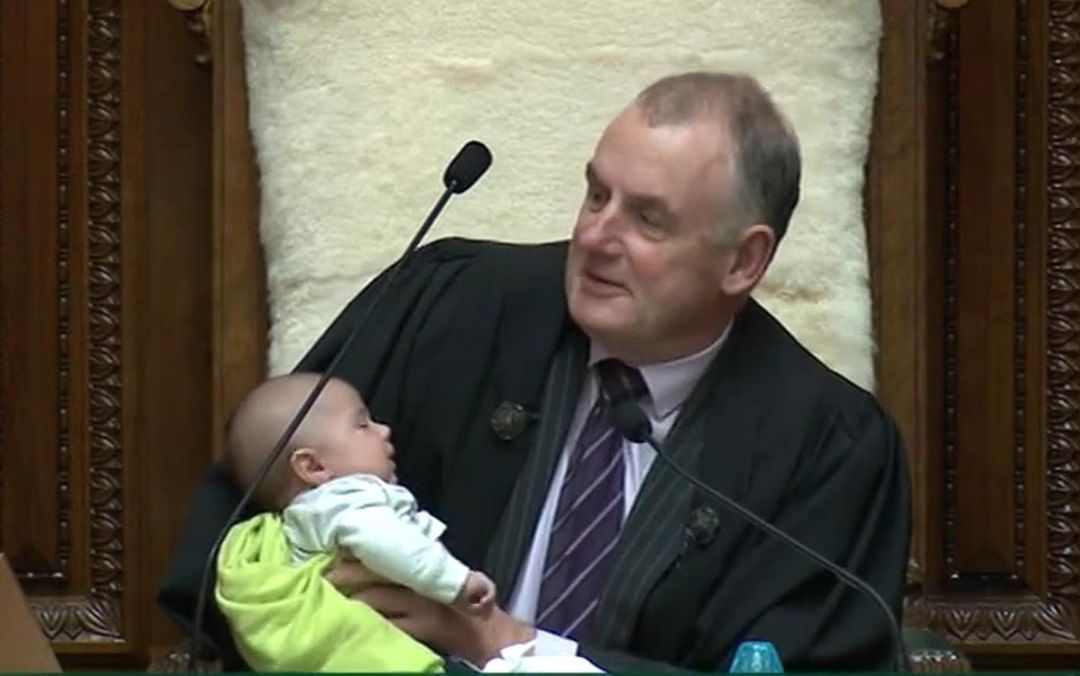 «Συνήθως τη θέση του προέδρου της Βουλής καταλαμβάνει ένας από τους προεδρεύοντες του Σώματος, αλλά σήμερα ένας VIP πήρε τη θέση μαζί μου» έγραψε ο πρόεδρος της Βουλής στη Νέα Ζηλανδία, Τρέβορ Μάλαρντ, στη λεζάντα της φωτογραφίας στο Instagram που τον δείχνει να ταΐζει ένα νεογέννητο μωρό κατά τη διάρκεια συνεδρίασης στη βουλή.