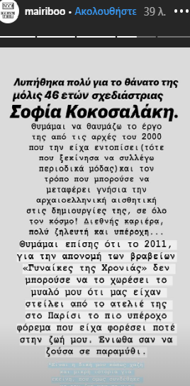 Πώς αντέδρασε ο κόσμος της μόδας στον θάνατο της Σοφίας Κοκοσαλάκη