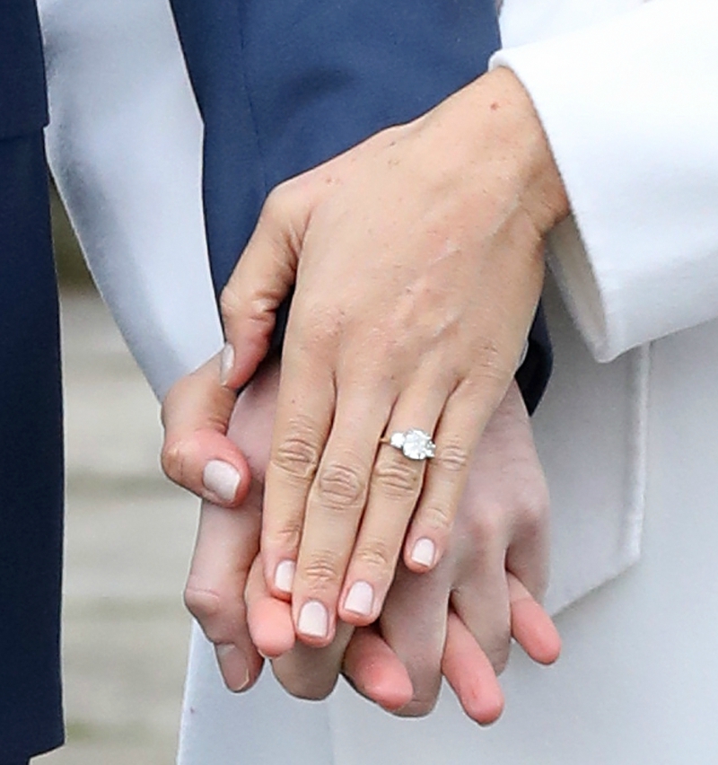 Το δαχτυλίδι είναι διαμαντένιο και ο Πρίγκιπας Harry το σχεδίασε μόνος του, χρησιμοποιώντας δύο μικρότερα διαμάντια από τη συλλογή κοσμημάτων της μητέρας του, Πριγκίπισσας Diana, ενώ το μεγάλο διαμάντι στο κέντρο είναι από την Botswana, μία χώρα που έχει αδυναμία ο ίδιος.