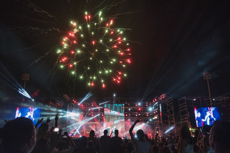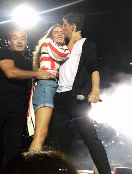 Τη στιγμή που ο τραγουδιστής παρουσίαζε το δυναμικό μουσικό του υπερθέαμα στο Δημοτικό Στάδιο Παραλιμνίου, η θαυμάστρια ανέβηκε στη σκηνή, γαντζώθηκε από τον λαιμό του και… τον φίλησε!