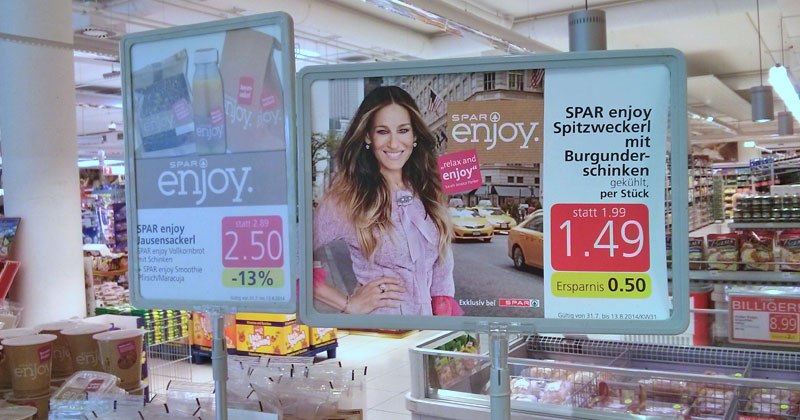 Πράγματι, η Parker συνεργάζεται με μεγάλη αυστριακή αλυσίδα τροφίμων και το πρόσωπό της φιγουράρει ανάμεσα σε προσφορές προϊόντων στα ράφια των καταστημάτων. Η απροσδόκητη συνεργασία γέννησε βέβαια και ερωτηματικά, για το -υπέρογκο- ποσό που θα πήρε η σταρ. Λέτε το fashion icon να δημιουργήσει τάση και να δούμε και άλλα πρόσωπα να ποζάρουν ανάμεσα σε τρόφιμα;
