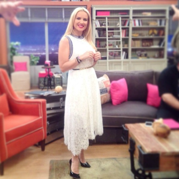 Τα στοιχεία που συνέθεσαν το look που μας εντυπωσίασε ήταν το λευκό το οποίο συνδυάστηκε εύστοχα με μαύρες και μπλε λεπτομέρειες. Πιο συγκεκριμένα, η Μαρία επέλεξε λευκό δαντελένιο φόρεμα, με μπλε ρίγες στο επάνω μέρος, της εταιρίας Serendipity, το οποίο ταίριαξε με σκουλαρίκια Folli Follie και μαύρες ψηλοτάκουνες γόβες Mark Milan.