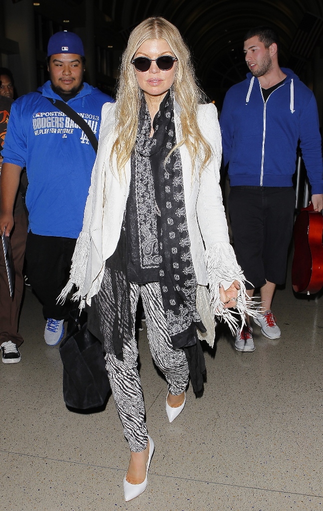 Η ξανθιά τραγουδίστρια των Black Eyed Peas εθεάθη στο αεροδρόμιο του Los Angeles, έχοντας μόλις επιστρέψει από την Washington. Η εμφάνιση της μόνο κατάλληλη για ταξίδι δεν φαινόταν, όμως οφείλουμε να παραδεχτούμε πως ήταν αρκετά στυλάτη.