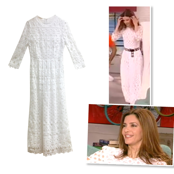 H ηθοποιός λοιπόν επέλεξε να φορέσει λευκό, έκανε πολύ καλά κατά την άποψή μας, μιας και είναι τάση αλλά με την ψηλόλιγνη σιλουέτα της δε θα μπορούσε παρά να δείχνει υπέροχο. Ένα φόρεμα Dondup λοιπόν ήταν η επιλογή της, το οποίο είχε ιδιαίτερη πλέξη και ήταν κατάλληλο για μια πρωινή εμφάνιση. Είναι γνωστό πως η Κατερίνα Λέχου προτιμά κυρίως κλασικούς συνδυασμούς και έτσι μαζί με το λευκό της φόρεμα φόρεσε μαύρα αξεσουάρ. Μια ζώνη στη μέση της, έκανε τη σιλουέτα της πιο θηλυκή, με πολύ σωστό τρόπο ενώ το look της ολοκληρώθηκε με ψηλοτάκουνα πέδιλα με κρόσσια που ήταν επίσης μαύρα. Τα μαλλιά και το μακιγιάζ της και πάλι ήταν πολύ απλά, έτσι κι αλλιώς δεν έχει ανάγκη ιδιαίτερη επιτήδευση.