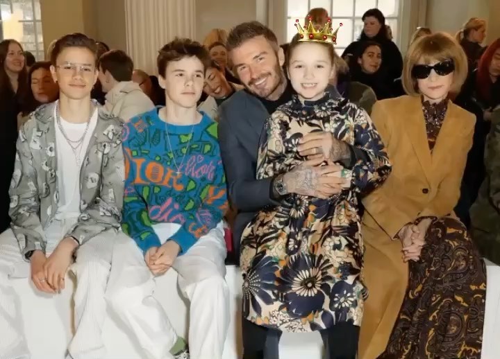Ο φωτογραφικός φακός του απαθανάτισε να κάθονται στη πρώτη σειρά της επίδειξης. Η Harper καθόταν στα πόδια του μπαμπά της και τα δυο αγόρια ακριβώς δίπλα τους.