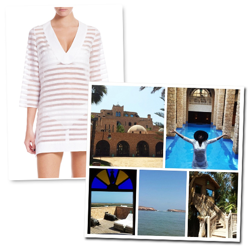 Οπότε δεν γινόταν να μην ανακαλύψουμε τη φωτογραφία που πόσταρε στο Instagram, από τις διακοπές της στο Μαρόκο, στην οποία απεικονίζεται με το μαγιό της κι ένα εξαιρετικό ριγέ cover Shoshanna με διάφανες λεπτομέρειες.