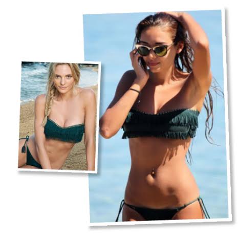 Το νεαρό μοντέλο επέλεξε πράσινο μαγιό με κρόσια και χρυσά τρουκς και δεν θα μπορούσαμε να μην το αναζητάσουμε. Το σχέδιο είναι της εταιρίας Despi, κοστίζει 121€ και μπορείτε να το βείτε online πατώντας εδώ.