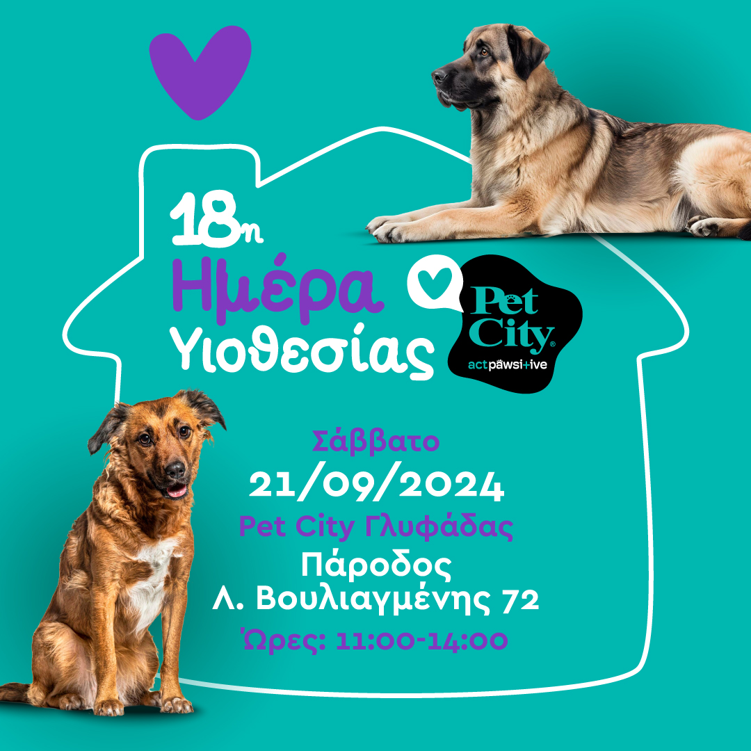Τα Pet City επιστρέφουν δυναμικά με τις Ημέρες Υιοθεσίας, έναν θεσμό που έχει καθιερωθεί τα τελευταία δύο χρόνια, με σκοπό να βρεθεί ένα παντοτινό σπίτι για κάθε αδέσποτο, διοργανώνοντας την 18η Ημέρα Υιοθεσίας σε συνεργασία με το Dogs’ Voice.