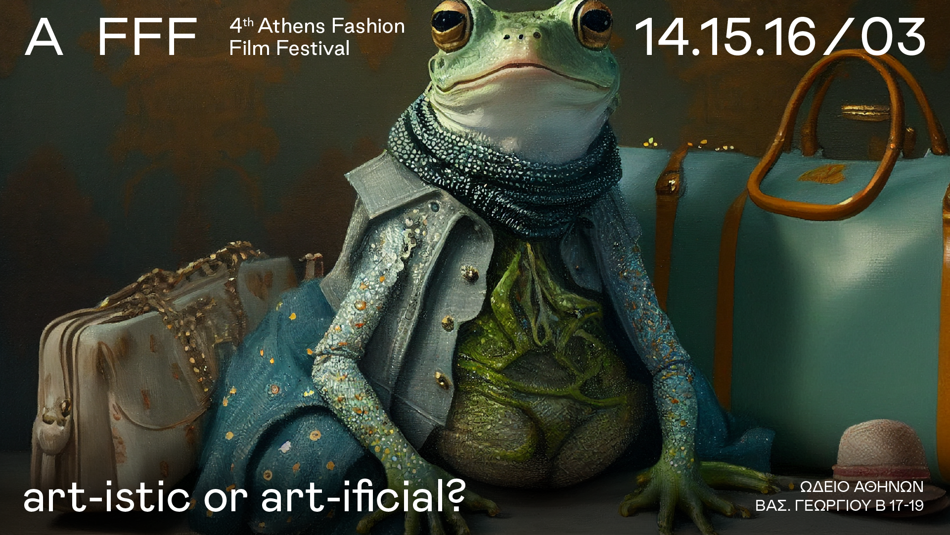 Με τίτλο “Art-istic OR Art-ificial?”, το 4ο Athens Fashion Film Festival επιστρέφει από Τρίτη 14 Μαρτίου έως Πέμπτη 16 Μαρτίου 2023 στο Ωδείο Αθηνών με ελεύθερη είσοδο, με δελτία προτεραιότητας, σε ένα τριήμερο που πρωταγωνιστεί η σύγχρονη κουλτούρα: ταινίες, μόδα, συζητήσεις, gatherings, masterclasses και… τεχνητή νοημοσύνη!