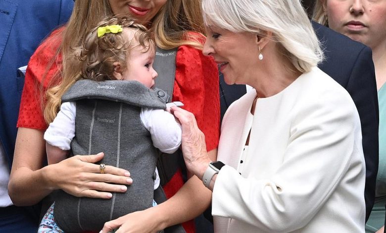 Η Carrie κρατούσε στην αγκαλιά της την επτά μηνών Romy την οποία φιλούσε στοργικά και τη χάιδευε τρυφερά όσο άκουγαν την ομιλία του συζύγου της. Αυτή είναι η πρώτη φορά που εκθέτει το πρόσωπο της κόρης της στις κάμερες και όλοι έσπευσαν να την απαθανατίσουν.