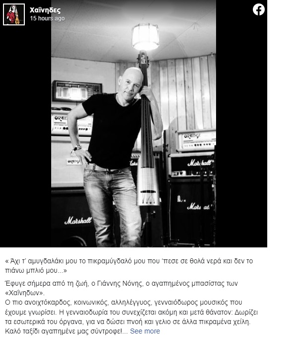 Θλίψη σκόρπισε στον χώρο της μουσικής ο θάνατος του Γιάννη Νόνη, μπασίστα των Χαΐνηδων, σε ηλικία 52 ετών.