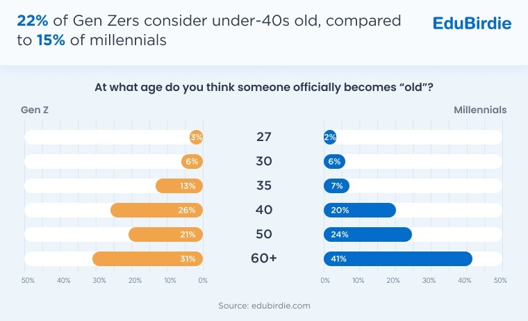 Για τις ανάγκες της έρευνας, ειδικοί από την EduBirdie ρώτησαν 2.000 άτομα της Gen Z και νεότερους millennials πότε πιστεύουν ότι ξεκινά η «τρίτη ηλικία».