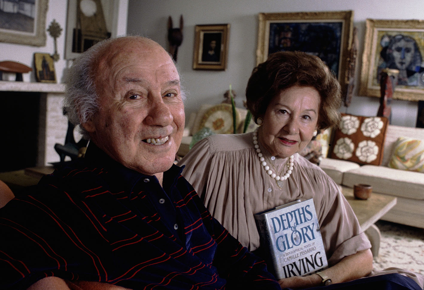Ο μυθιστοριογράφος και συγγραφέας βιβλίων Irving Stone στο σπίτι με τη σύζυγό του Jean Factor Stone, 3 Σεπτεμβρίου 1985 στο Λος Άντζελες της Καλιφόρνια. (Photo by Bob Riha, Jr./Getty Images)