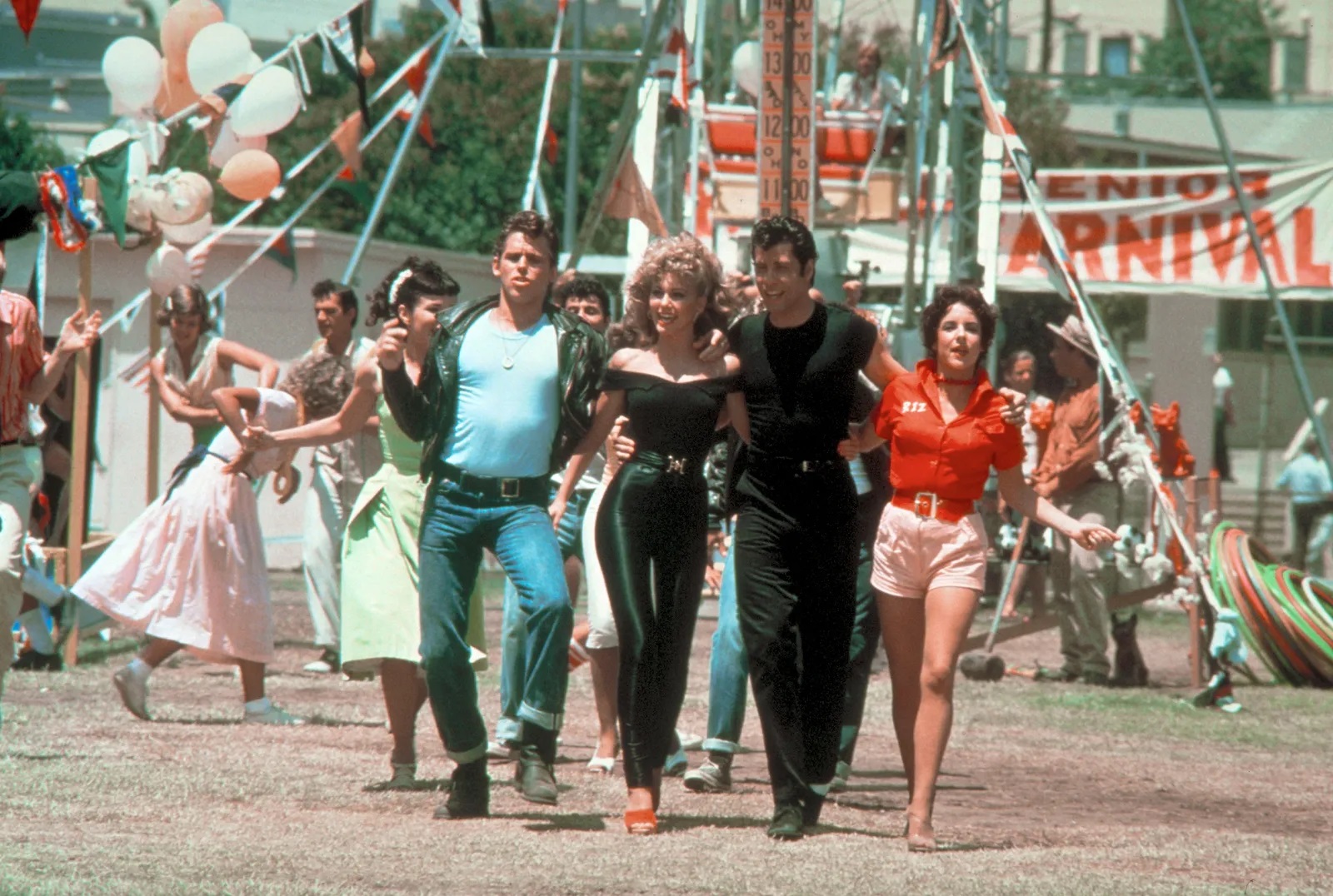 Δερμάτινο μπουφάν, τοπ με γυμνούς ώμους, μαύρο παντελόνι spandex… ένα ρούχο που φαίνεται απλό αλλά που ανεβάζει τη διάθεση γιατί μεταμορφώνει την ντροπαλή Sandy σε femme fatale. Στους φρενήρεις ρυθμούς του You’re The One That I Want, η Olivia Newton-John στροβιλίζεται, ταλαντεύεται και ηλεκτρίζει έναν John Travolta κυριολεκτικά με μια ματιά. Για να αναδείξει την εξέλιξη του χαρακτήρα, ο ενδυματολόγος Albert Wolsky ήθελε να δημιουργήσει μια εντυπωσιακή χρωματική αντίθεση: ενώ η Sandy είναι ντυμένη στα παστέλ σε όλη την ταινία, υιοθετώντας το στυλ του φίλου της, ξεχωρίζει από το υπόλοιπο πλήθος. Στον εξαιρετικά πολύχρωμο κόσμο του καρναβαλιού που συναντιέται το ζευγάρι, έχουμε μόνο μάτια για τις δύο σκοτεινές φιγούρες που μπλέκονται και σαγηνεύουν η μια την άλλη.