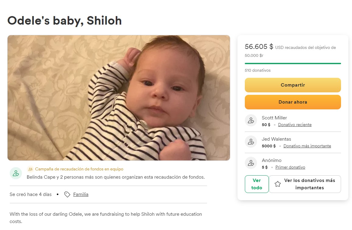 Η οικογένεια δημιούργησε σελίδα στο GoFundMe συγκεντρώνοντας δωρεές για να καλύψουν το κόστος της εκπαίδευσης της νεογέννητης κόρης της Odele.