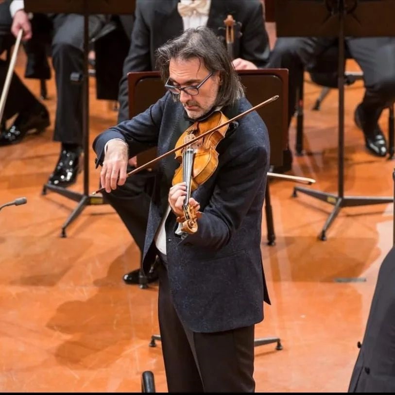 Ο διακεκριμένος Ουκρανός βιολονίστας Ντμίτρο Ουντοβιτσένκο συνδιαλέγεται με τον Λεωνίδα Καβάκο στο δεξιοτεχνικό Κοντσέρτο για 2 βιολιά και ορχήστρα σε ρε ελάσσονα του Γ.Σ. Μπαχ.