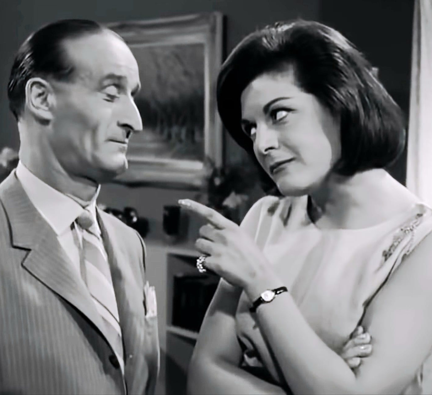 Στη φωτογραφία, κατά την έξοδο τους από την εκκλησία, η ηθοποιός εντυπωσιάζει τους πάντες, με την αρχοντιά και το σικάτο νυφικό της σε γραμμή Dior και δεξιά ο Φιλοποίμην Φίνος με τον οποίο ο σκηνοθέτης θα συνεργαστεί στην θρυλική “Άγνωστο” το 1956, με την μεγάλη Κυβέλη στον πρώτο ρόλο.
