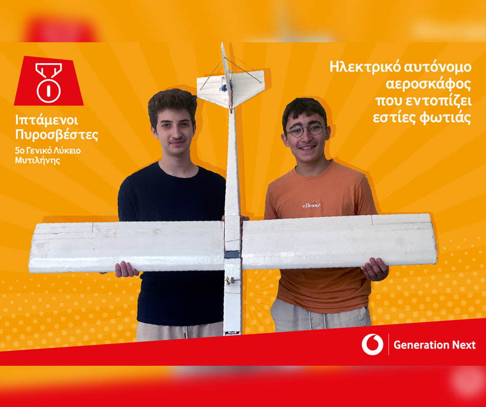 Ο 6ος Πανελλήνιος Διαγωνισμός Generation Next του Ιδρύματος Vodafone ολοκληρώθηκε με εκατοντάδες μαθητές και μαθήτριες δευτεροβάθμιας εκπαίδευσης να λαμβάνουν μέρος από κάθε γωνιά της Ελλάδας. Για ακόμη μια χρονιά τα παιδιά είχαν την ευκαιρία να περιηγηθούν στον κόσμο του STEM, να δουλέψουν ομαδικά και να πειραματιστούν με την τεχνολογία, λύνοντας πραγματικά προβλήματα. Την πρώτη θέση απέσπασε η ομάδα «Ιπτάμενοι Πυροσβέστες», από το 5ο Γενικό Λύκειο Μυτιλήνης, η οποία σχεδίασε το Fire Detecting Airplane.