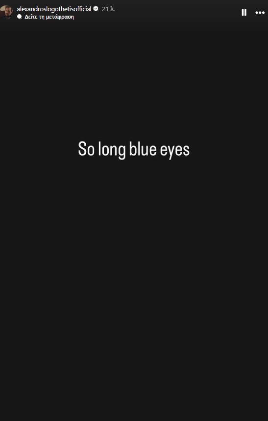 «Αντίο γαλάζια μάτια» έγραψε σε Story στο Instagram o Αλέξανδρος Λογοθέτης.