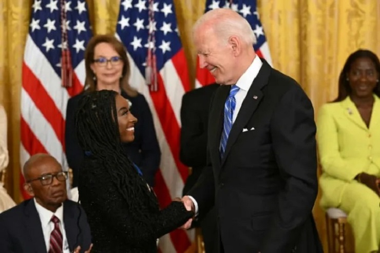 H Simone Biles τιμήθηκε από τον πρόεδρο των ΗΠΑ Τζο Μπάιντεν με το Προεδρικό Μετάλλιο Ελευθερίας και έτσι έγινε το νεότερο άτομο που λαμβάνει αυτή την τιμή.