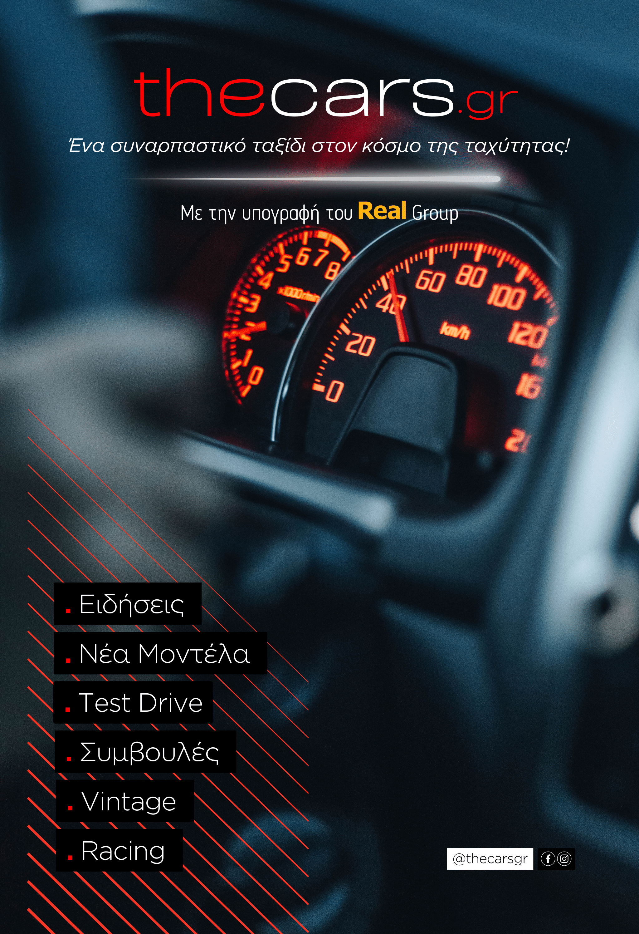 Ο όμιλος Real παρουσιάζει το νέο του site, thecars.gr. Μια καινοτόμο ιστοσελίδα με αντικείμενο το αυτοκίνητο, την τεχνολογία, το racing και την αυτοκίνηση σε συνδυασμό με την οικολογία και το περιβάλλον.