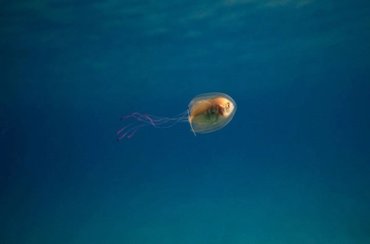 Ορισμένες ράτσες ψαριών αναζητούν καταφύγιο κάτω από τα τσιμπήματα των μεδουσών, οπότε ίσως αυτός ο μικρός έχασε λίγο το σημάδι του. Είτε έτσι είτε αλλιώς, οι φωτογραφίες του Samuel κερδίζουν σίγουρα το βραβείο για το πιο παράξενο θέαμα της ημέρας.