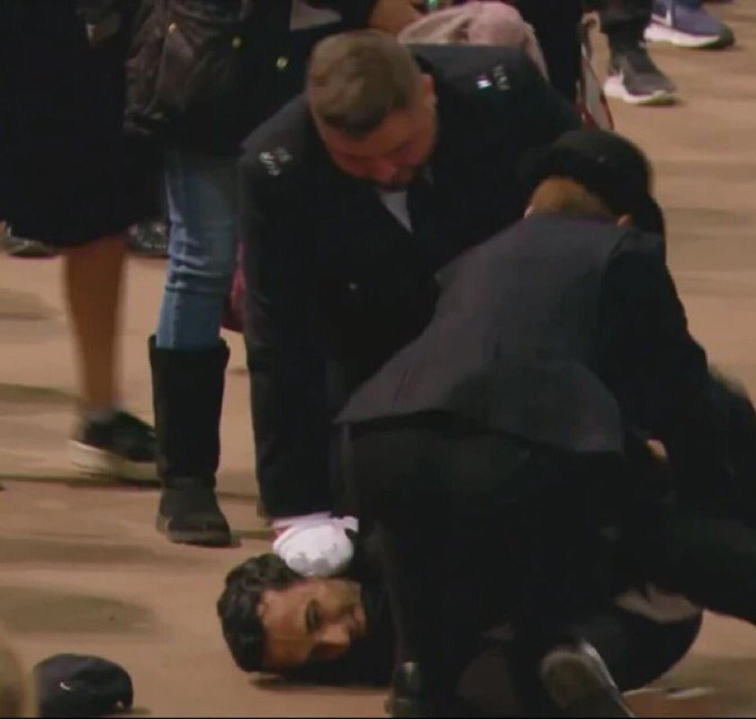 🚨 Footage of man attempting to attack the Coffin of #QueenElizabeth at Westminster abbey pic.twitter.com/zT0iE6PMx5
