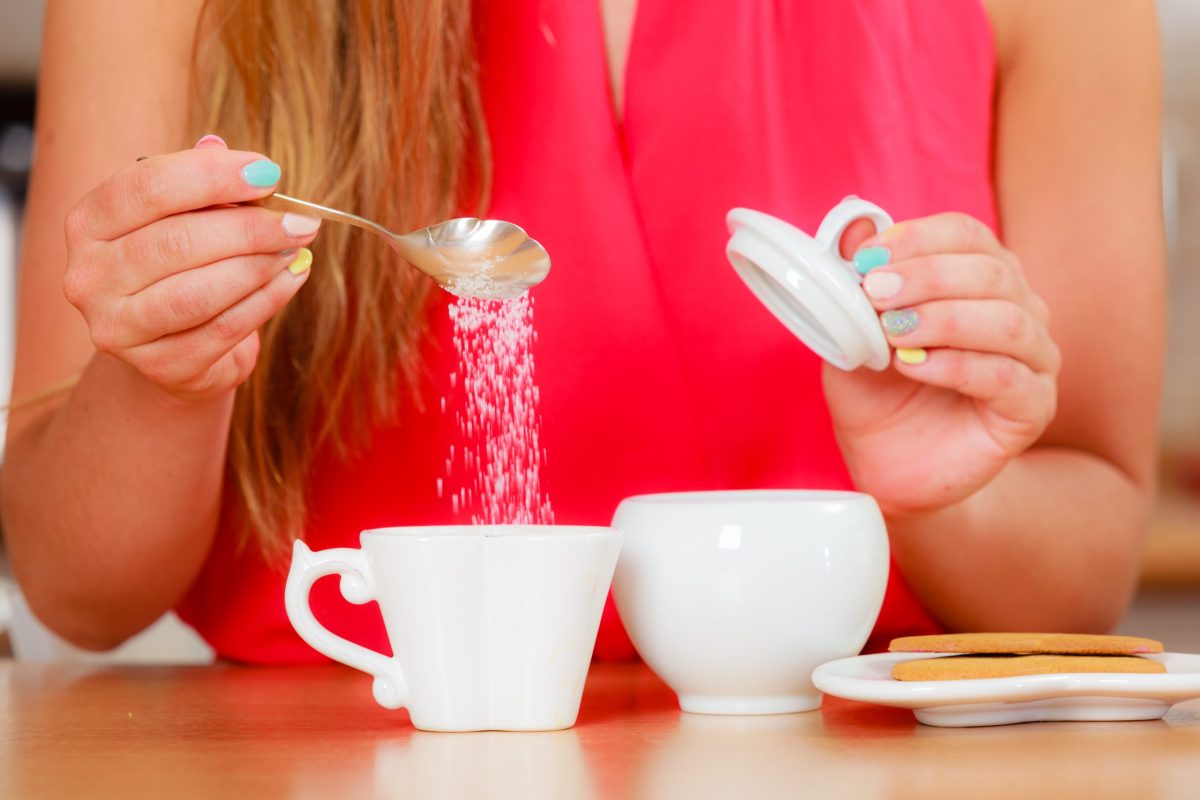 Γυναίκα βάζει ζάχαρη στον καφέ