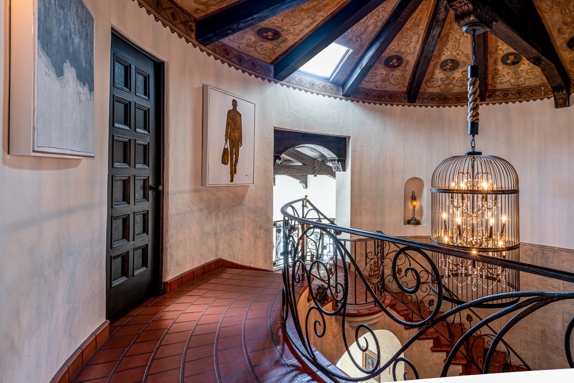Διαθέτει, μεταξύ άλλων ανέσεων, 4 κρεβατοκάμαρες και 6 μπάνια, ψηλοτάβανο χώρο υποδοχής και κουζίνα, ρομαντικά μπαλκόνια, ξυλόγλυπτες λεπτομέρειες στις αψιδωτές πόρτες, πολυτελή πλακάκια στα δάπεδα και στα μπάνια, μεγάλα παράθυρα με όμορφα βιτρό, εντυπωσιακές εσωτερικές σκάλες, καθώς και τζάκι σε πολλά δωμάτια.