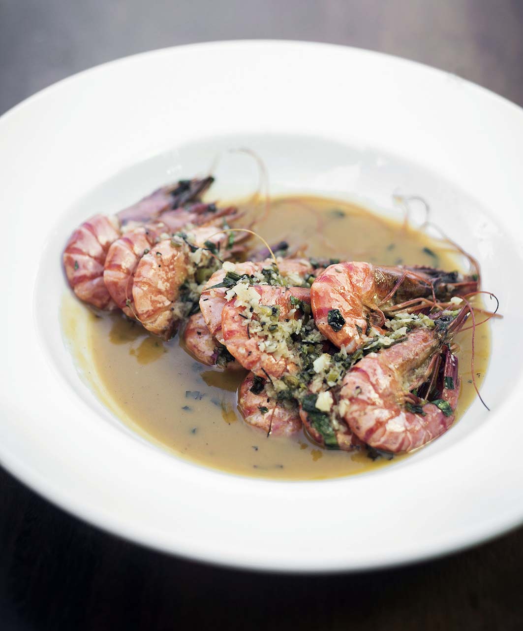 Γαρίδες σοτέ με σάλτσα κρασιού, σκορδοβούτυρο & φρέσκα μυρωδικά